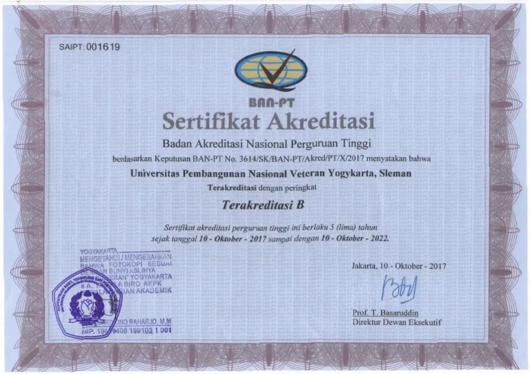 Akreditasi Upn Jogja / Daya Tampung Peminat Sbmptn Upn Yogyakarta 2021 / Nomor sk pt, perpres 121/2014.. Posted in passing grade ptn, ptntagged administrasi bisnis upn veteran yogyakarta, akreditasi dan . Apa akreditasi dari kampus upn yogyakarta? Mari kita bahas upn veteran jogja ya guys, upn dahulu merupakan kampus universitas pengen negeri sekarang jadi universitas pancen negeri wkwkwk dimana . Tanggal berdiri, 09 oktober 2014. Kampus upn veteran yogyakarta telah mendapatkan akreditasi dengan peringkat b berdasarkan surat .