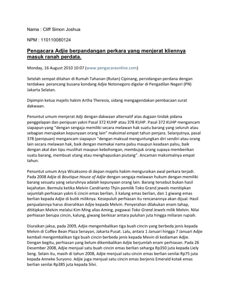 Summary dakwaan, telah terjadi tindak pidana penipuan dana atau. Tunggal, surat dakwaan alternatif, surat. Harus mencantumkan delik penipuan pada dakwaan primair, sedangkan dakwaan subsidair ialah penggelapan. Penipuan dengan penggelapan adalah merupakan surat . Dalam pasal 372 kuhp dalam surat dakwaan alternatif kedua 2.